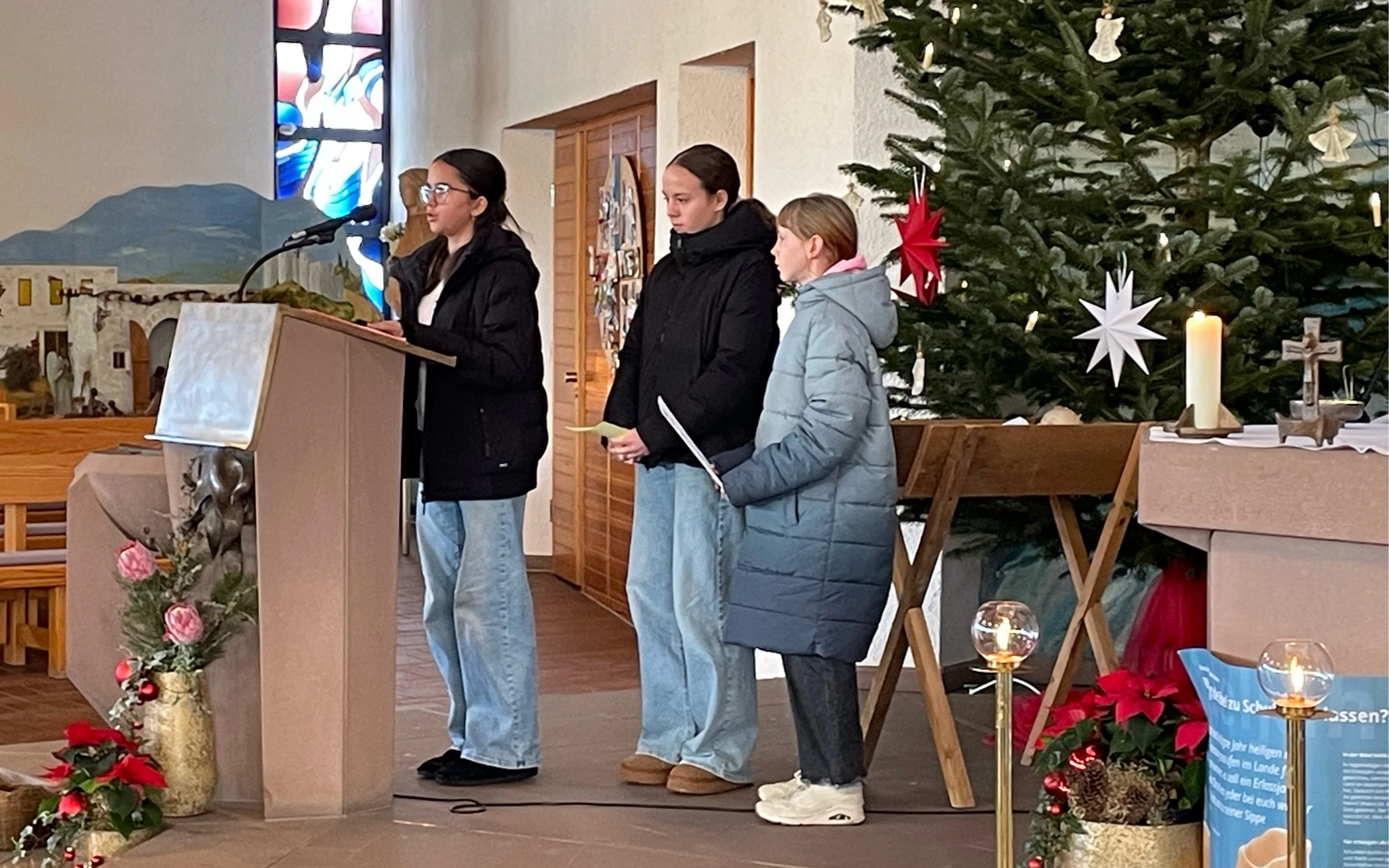 Die UNESCO- AG des Theodor-Heuss-Gymnasiums hat zu Beginn des neuen Jahres am ökumenischen Gottesdienst in der Thomaskirche in Unterrombach teilgenommen. Themen wie „Gerechtigkeit“, „Menschenrechte“ und die „Kampagne Erlassjahr 25 Turn Debt into Hope“ standen dabei im Zentrum. Gebete, Fürbitten und Lesung waren auf diese Themen abgestimmt. Unterstützt wurden die Schüler*innen von den ehemaligen Lehrerinnen Herma Geiß und Luzia Gutknecht.