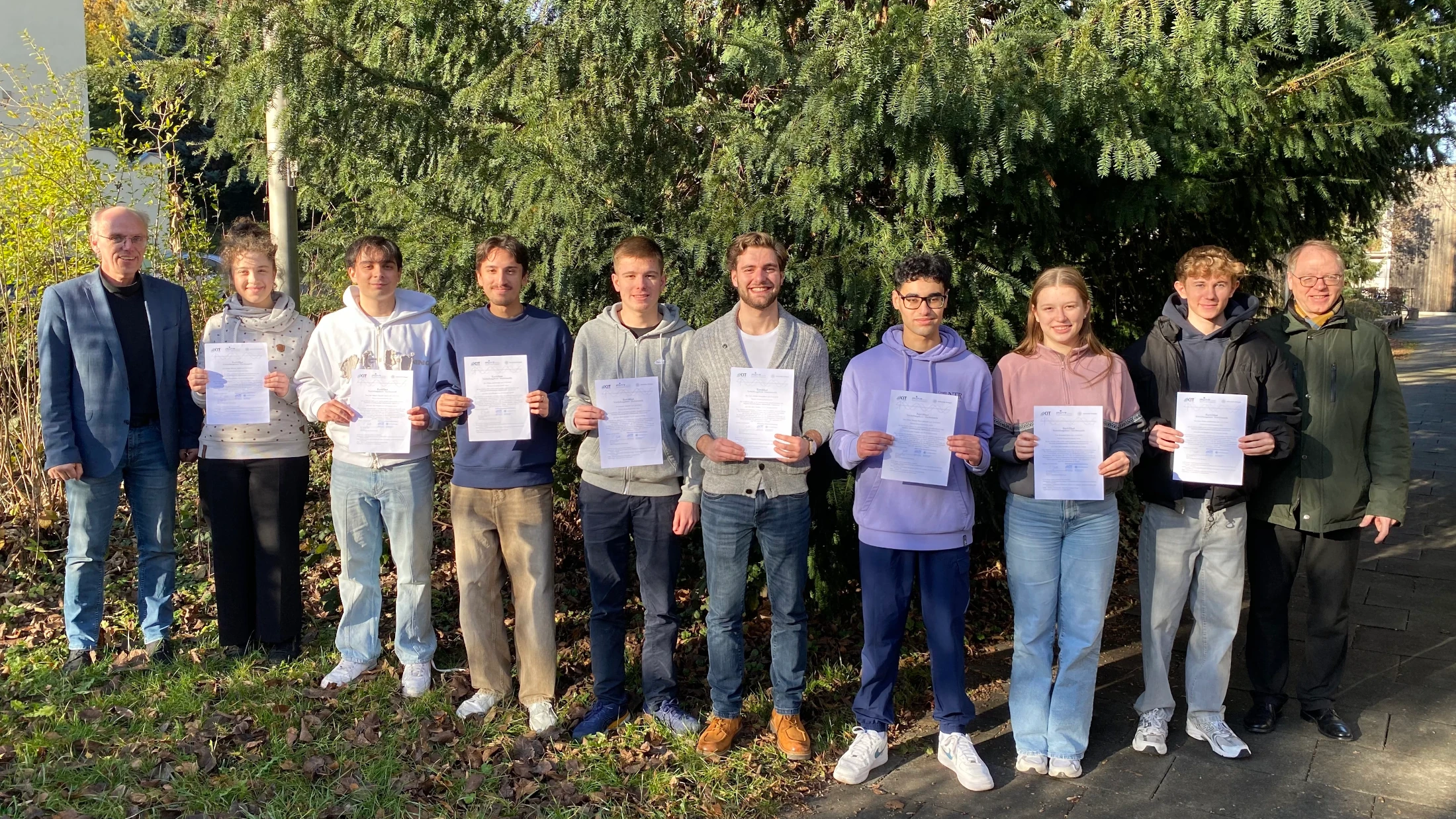 Nach einer einjährigen Vorbereitung nahmen acht Schülerinnen und Schüler des THG an der zentral gestellten Zertifikatsklausur im Schulfach Vertiefungskurs Mathematik teil. Nun erhielten sie für die erfolgreiche Teilnahme an der Klausur ein Zertifikat. Dabei erreichten Omar Alkhaldi, Martin Grosche und Luca Gurgoglione eine Punktzahl, die als exzellent eingestuft werden kann.