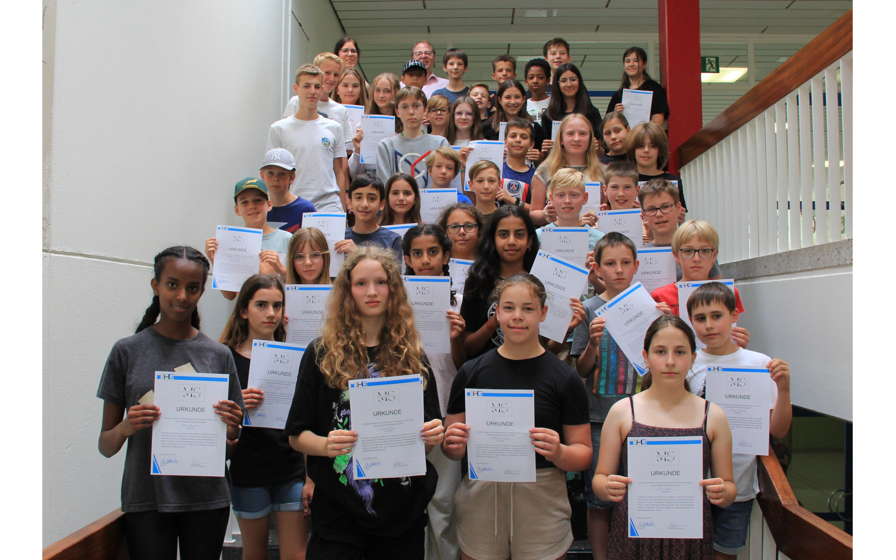 Das Schuljahr endete mit einer Prüfung, bei der die Schülerinnen und Schüler ihr erlerntes Wissen unter Beweis stellen mussten. Von 45 Teilnehmern bestanden 44 die Prüfung und erhielten die Urkunde „THG-Medienscouts", die Schulleiter Dr. Christoph Hatscher persönlich überreichte.