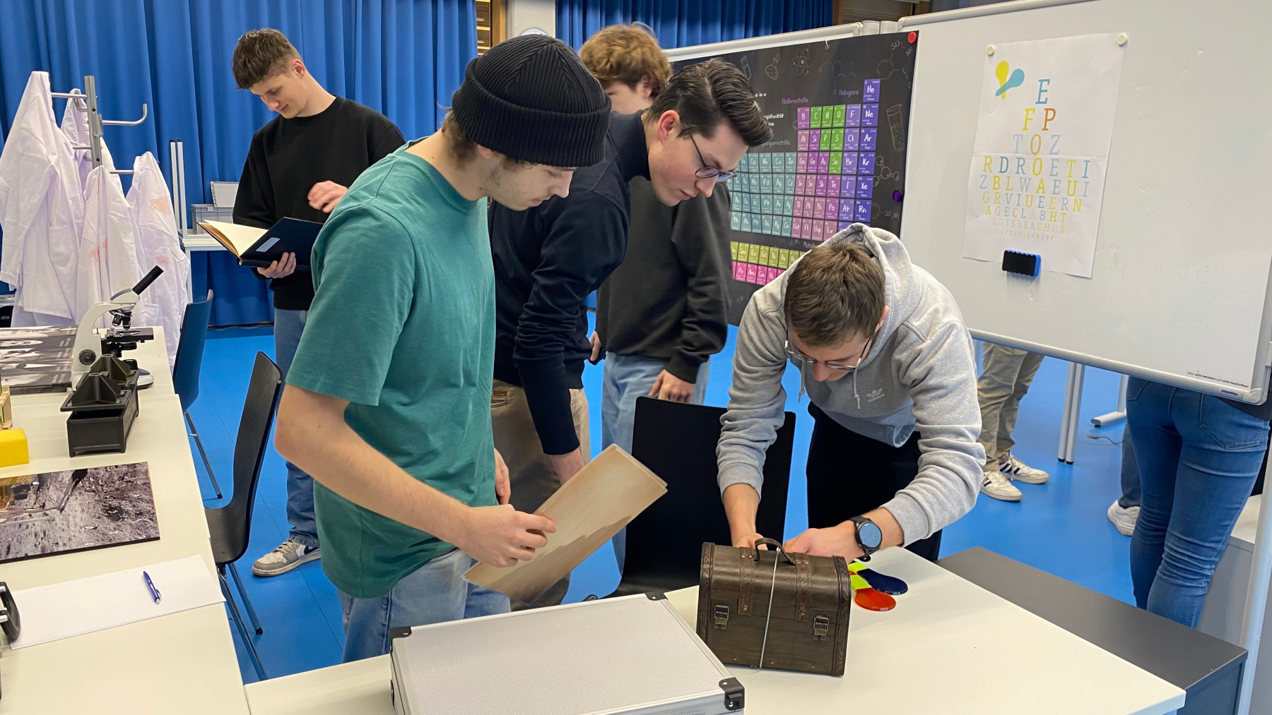 Im Rahmen der Zukunftsinitiative „A Heart for Science“ wurde von Mitarbeitenden der Firma ZEISS ein wissenschaftliches Escape-Game rund um das Thema Optik entwickelt. Eine perfekte Gelegenheit für die Schülerinnen und Schüler des Physik Leistungskurses das frisch erlernte Wissen in Optik auf amüsante aber auch spannende Weise zu reflektieren. Darüber hinaus gab es eine passende Entdeckertour zum Thema Optik durch die Ausstellung des Explorhino.