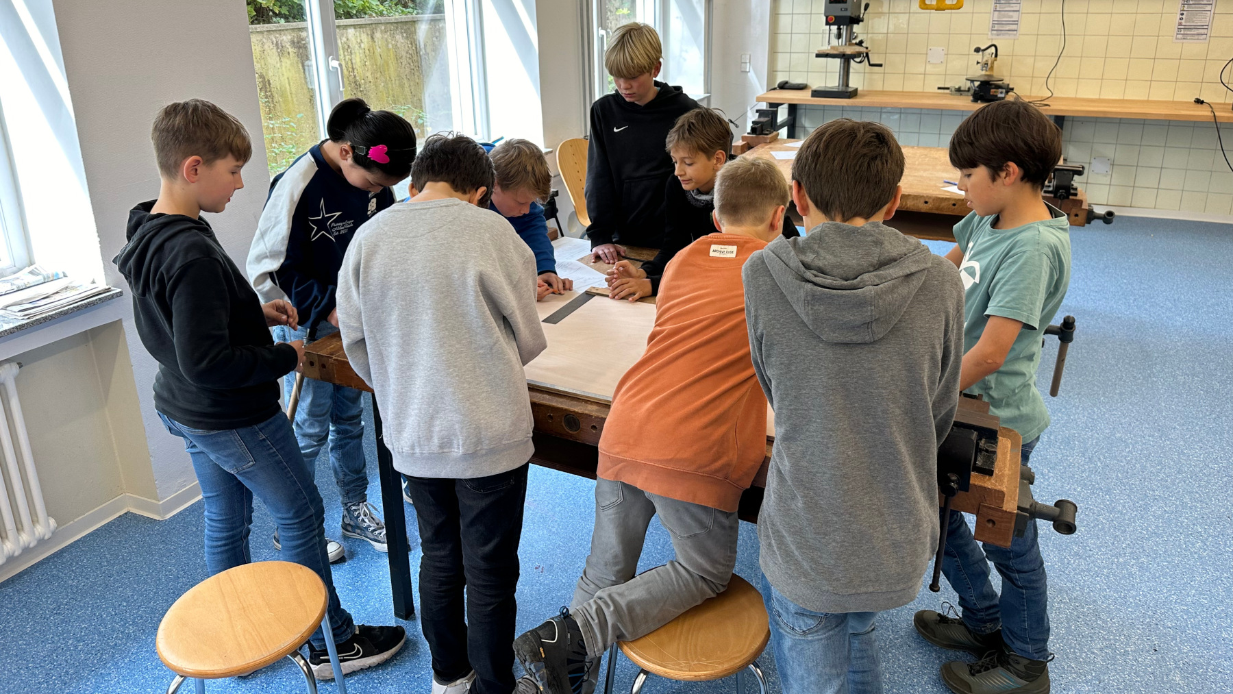 Die Schülerinnen und Schüler der Klassenstufe 6 haben Rahmen der JIAmini mit einem handwerklich anspruchsvollen Projekt begonnen: dem Bau eines Nussknackers aus Holz. Dabei erlernten sie wichtige Fertigungsverfahren wie das Bohren mit einer Standbohrmaschine, das Feilen und das präzise Sägen von Holz.