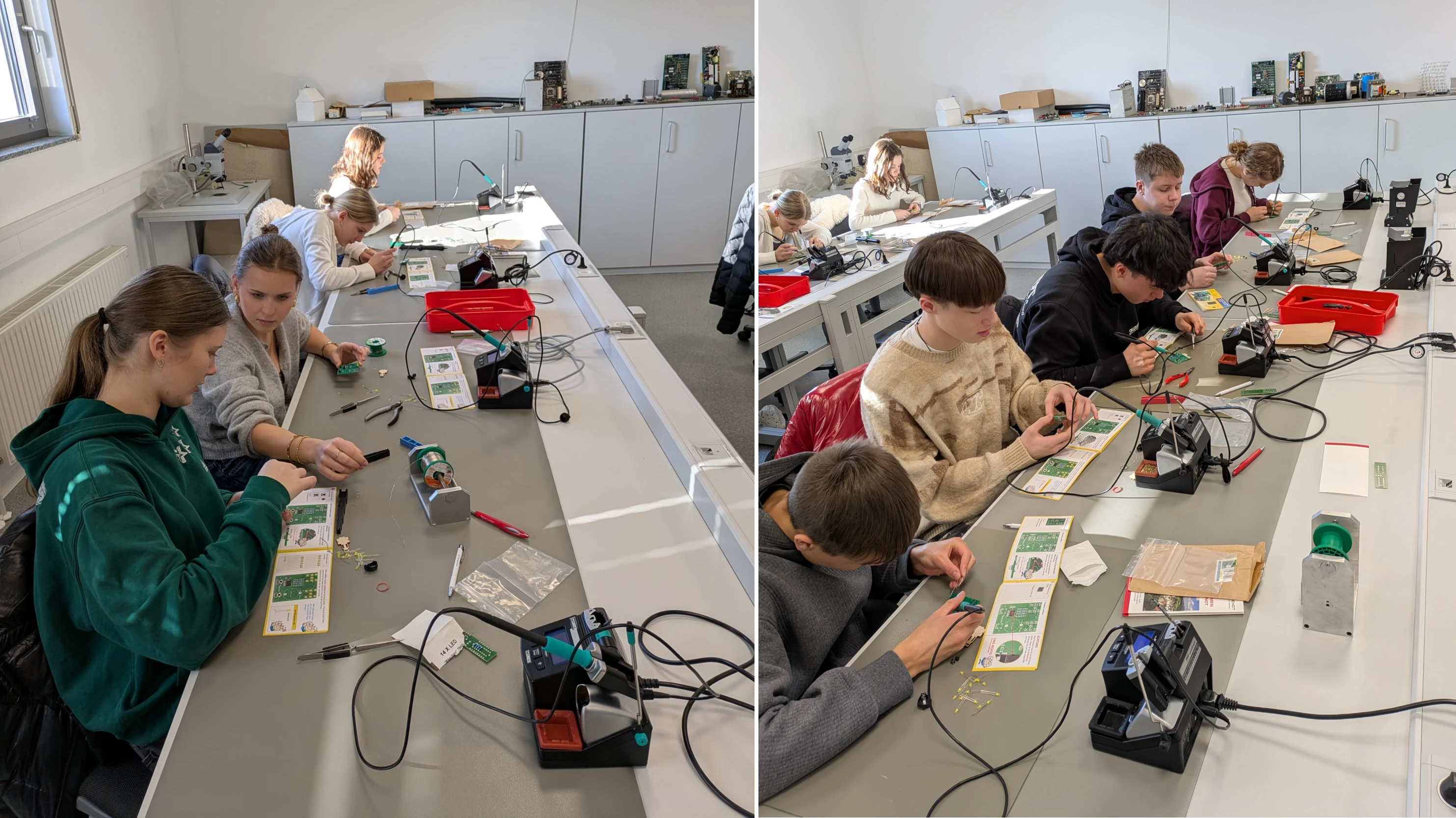 Zu Beginn stand eine praktische Einführung in die Löttechnik auf dem Plan. Dabei lernten die Jugendlichen die wichtigsten Werkzeuge kennen und erfuhren, worauf es beim sicheren und sauberen Löten ankommt. Neben hilfreichen Tipps wurden auch grundlegende Sicherheitsregeln vermittelt, sodass alle gut vorbereitet in die nächsten Aufgaben starten konnten.