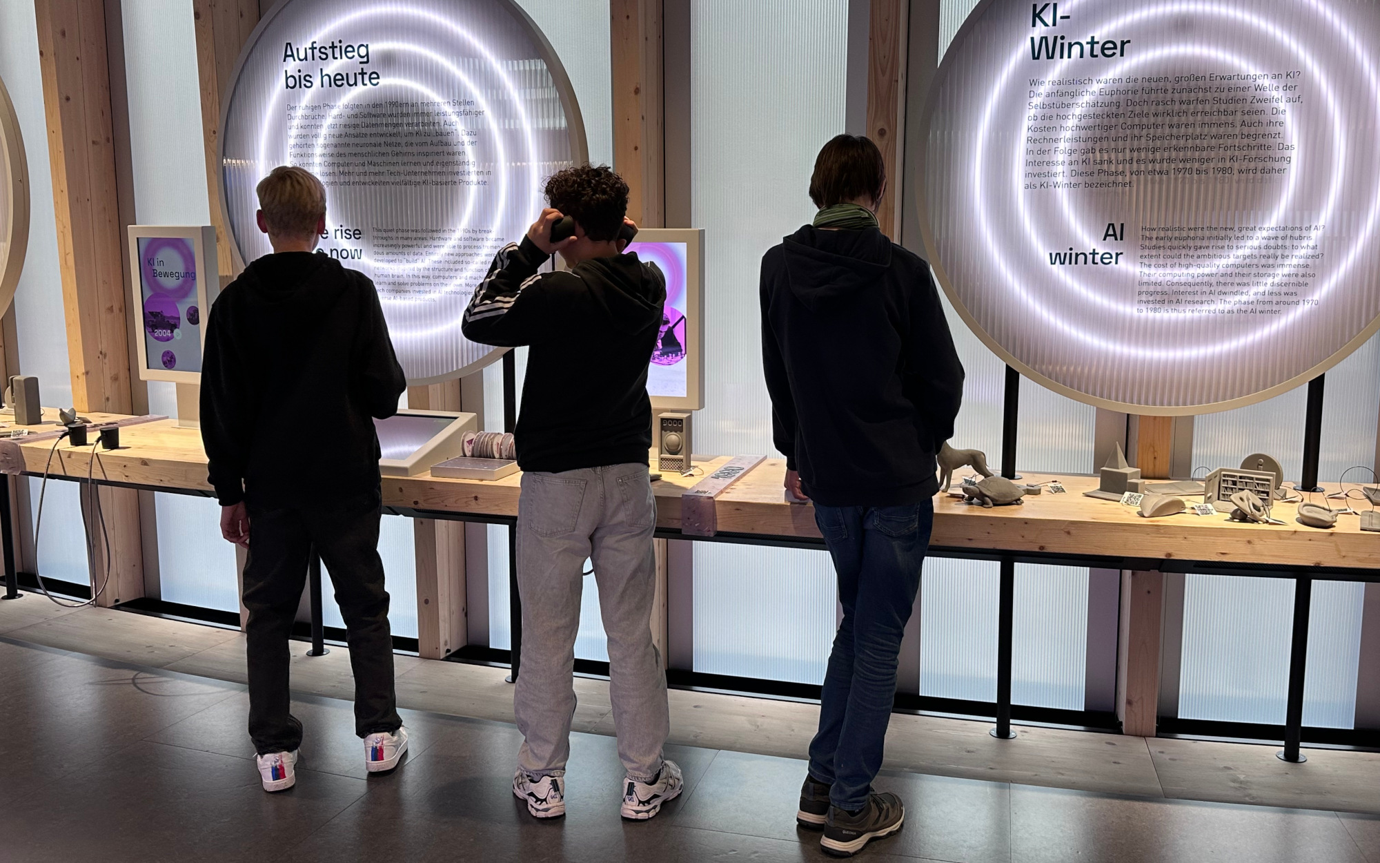 In der interaktiven Ausstellung erhielten die 19 Schüler*innen spannende Einblicke darin, was sich hinter dem Begriff Künstliche Intelligenz (KI) verbirgt und wie deren Entwicklung begann. Zahlreiche historische Apparaturen wurden medial anschaulich dargestellt und zeigten die rasante Entwicklung der KI in den letzten Jahren. Weiter zum Bericht.